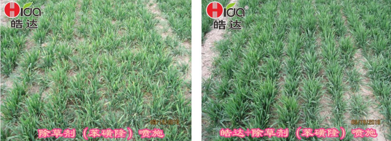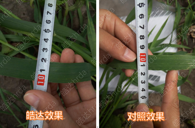 施肥时期:返青期 时期问题: 叶片薄,光合效率低,养分积累慢,小麦抗逆性差; 施肥方案: 叶喷:皓达功能肥1000倍(30-50mL/亩)+皓达螯合锌1000倍(50mL/亩)与除草剂一起叶面喷施 施肥效果: 提高小麦抗逆性,促进小麦发根,叶片厚绿,增强光合作用和养分积累。同时可促进除草效果,并减轻和避免小麦受到除草剂药害。