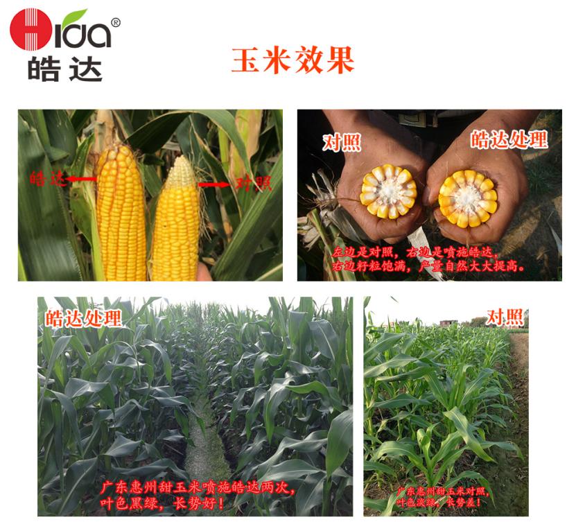 施肥时期:灌浆期 时期问题 干物质不易积累,籽粒不饱满,易秃尖,千粒重低; 施肥方案: 滴灌:滴灌:皓达功能肥100mL/亩(随大肥) 施肥效果: 增加干物质的积累和千粒重,玉米籽粒饱满,同时能有效减少玉米秃尖的产生,玉米颜色正,产量高。 |