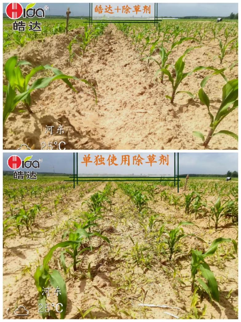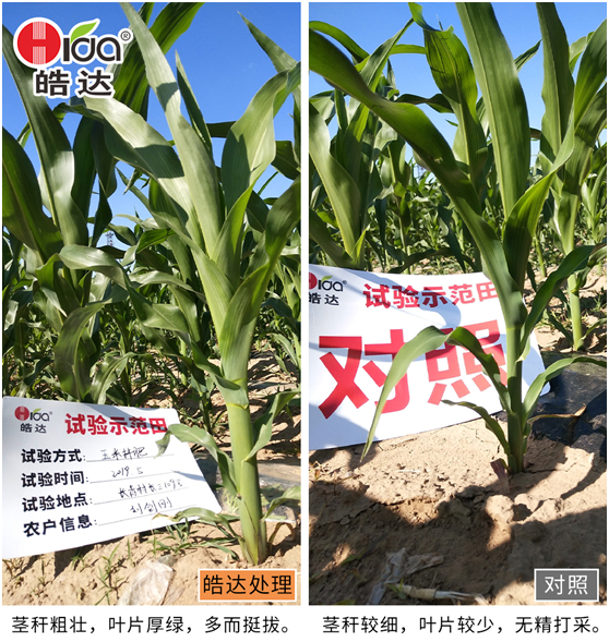 施肥时期:大喇叭口期 时期问题: 因根系问题引起的玉米生长差,植株抗性差,光合效应差; 施肥方案:叶喷+滴灌 叶喷:皓达功能肥1000倍(30-50mL/亩)+皓达硼1000倍(50mL/亩)与杀虫剂一起叶面喷施 滴灌:皓达功能肥100mL/亩(随大肥) 施肥效果: 满足玉米生长的养分供应,促进玉米根系发达、植株壮实抗性强;叶片厚绿,光合作用能力强。