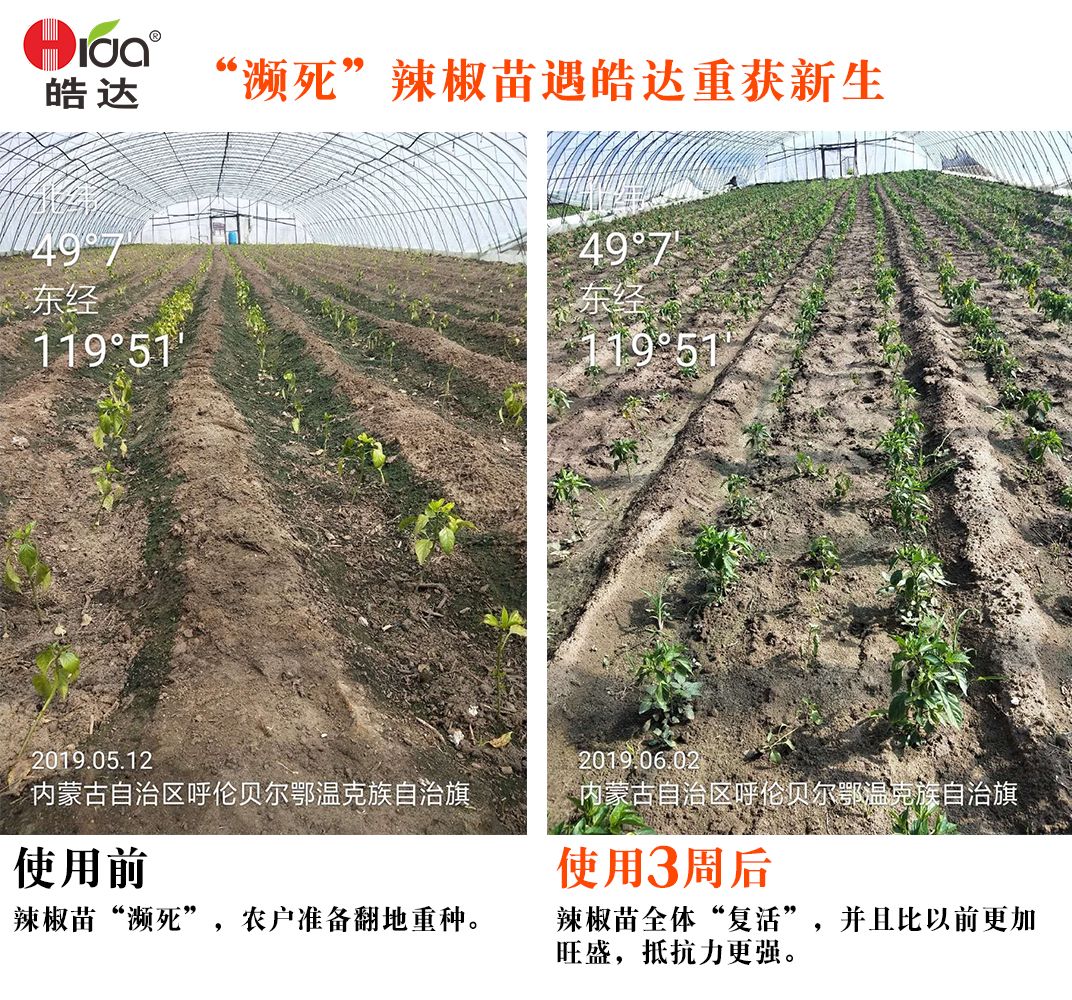 施肥时期:底肥 时期问题: 肥料利用率低,过量盲目施肥,导致土壤健康问题日益严重;土壤破坏性板结、菌害、重茬等问题; 施肥方案: 拌肥:将皓达功能肥按底肥用量的0.4%(100mL/亩)与底肥一起进行搅拌掺混,均匀即可; 施肥效果: 减弱肥料中养分离子的拮抗作用,提高肥料的利用率;促进肥料吸收,延长肥效;增加土壤有益微生物菌群,维持土壤养分平衡。