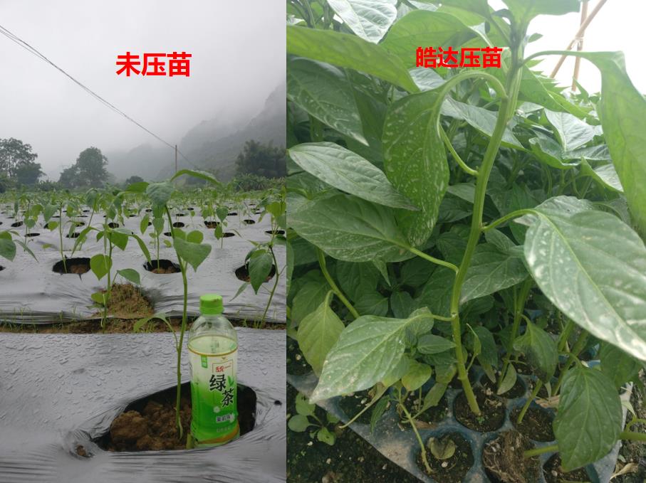 施肥时期:苗期(移栽缓苗) 时期问题: 植株不够健壮,长势过旺易徒长; 施肥方案:叶喷+滴灌 叶喷:皓达功能肥1000倍(30-50mL/亩)+皓达锌1000倍(30-50mL/亩) 滴灌:皓达功能肥100-200mL/亩(随大肥) 施肥效果: 缓苗快,缓解除草剂残留抑制,促使根系发达,叶片浓绿肥厚。