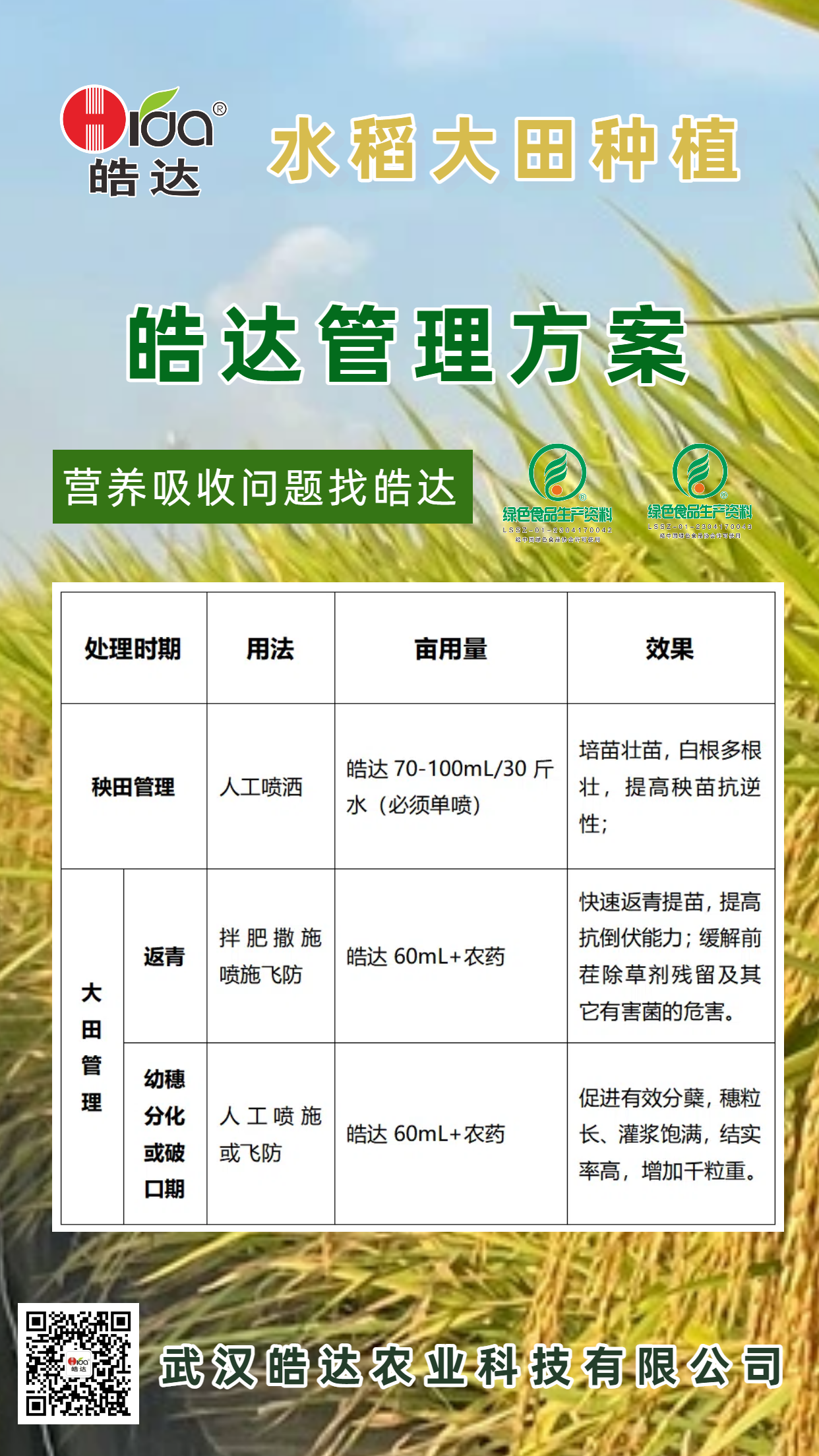 水稻大田种植皓达管理方案