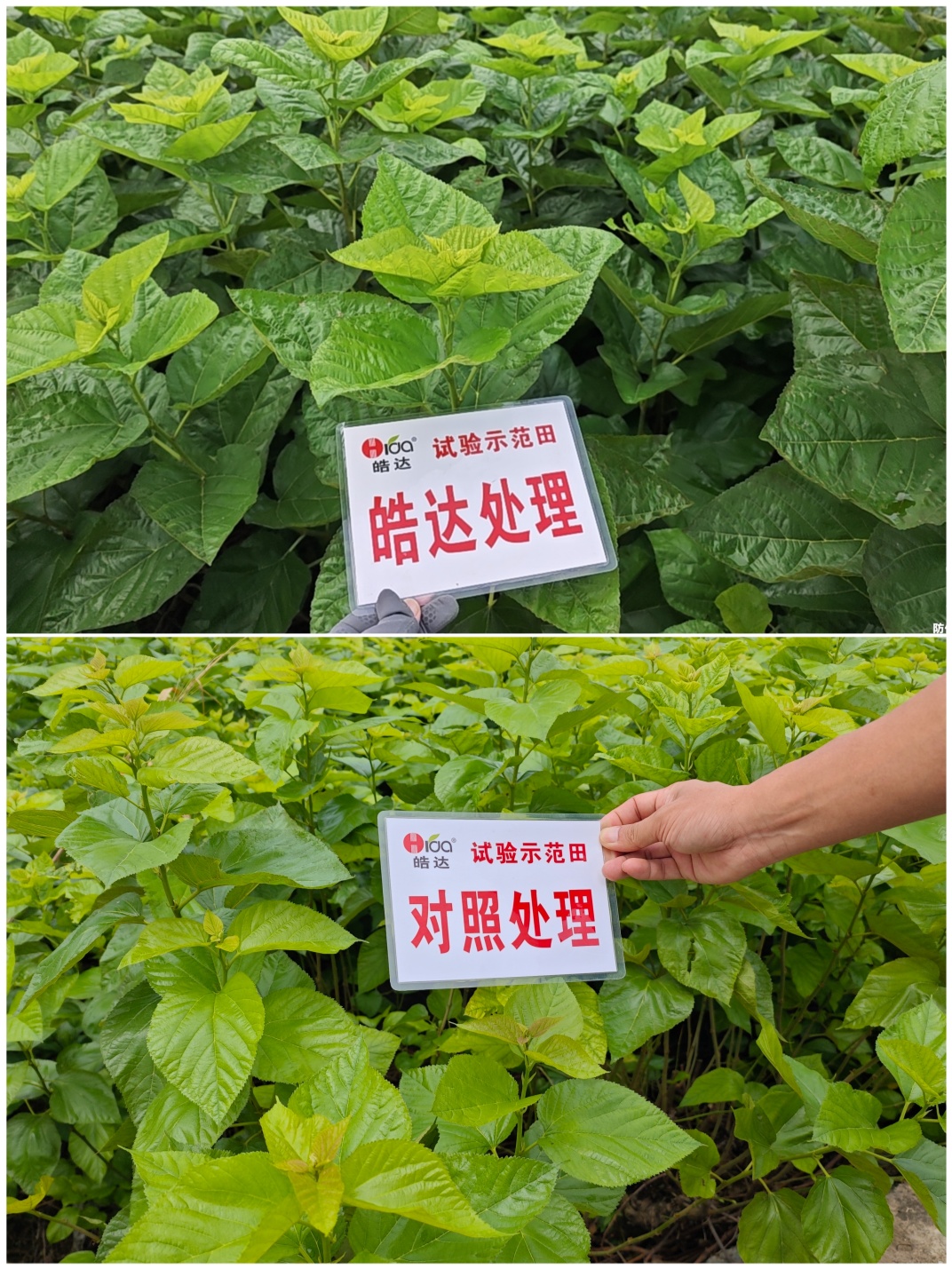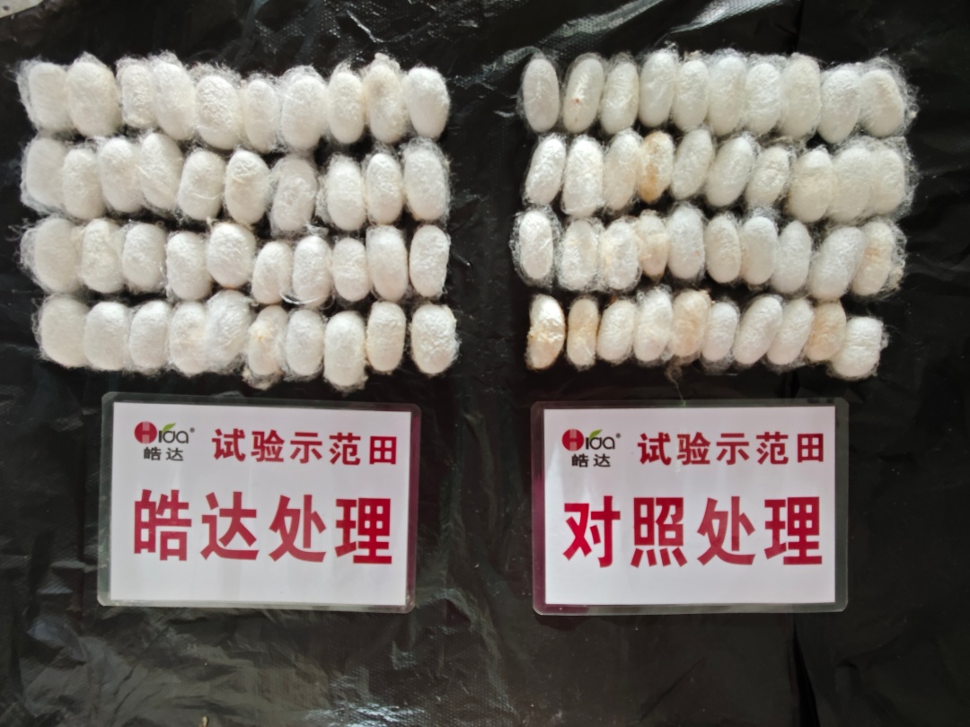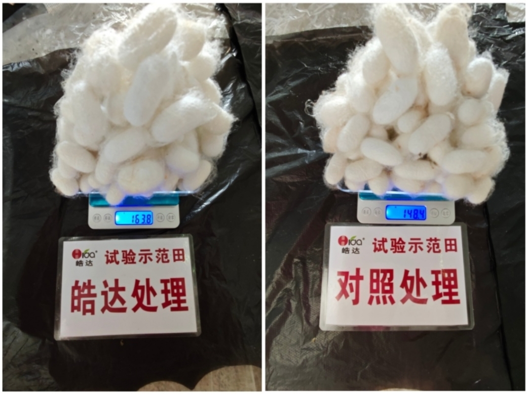 用“皓达”叶面喷施于桑树上,可以促进桑树的生长,能提早萌芽与展叶,使多发枝,多长叶,叶片宽大肥厚,桑叶产量大幅度增加。桑叶质量也大大提高,表现为叶色浓绿、鲜嫩,蚕喜欢吃,蚕体生长健壮,蚕茧重。