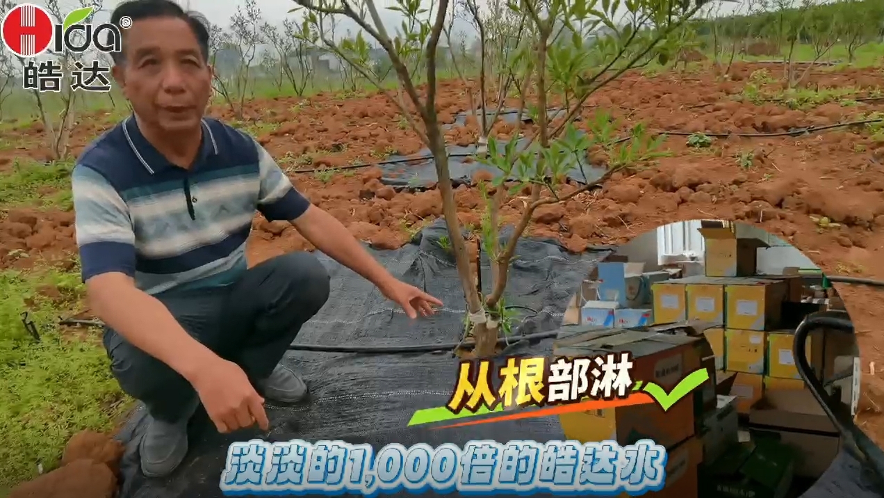 黄总分享的种植经验是:每次在嫩芽时叶面喷施“皓达”500倍液,同时结合根部用“皓速补”淋根从10克/棵树开始,根系发达后增加到100克到150克/棵树,一年2次。